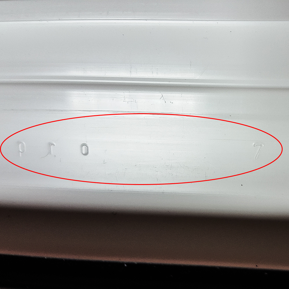 • И второй совет, на случай, если с определением маркировки возникли какие-либо трудности. Внимательно осмотрите поверхность рамы. Если вы видите вставки серого цвета (как на фото), то можно с уверенностью сказать, что профиль произведен в Германии. Это внутренние вставки из вторично переработанного пластика, подкрашенные в серый цвет. Профиль из России и Украины полностью выполнен из первичного пластика белого цвета.
