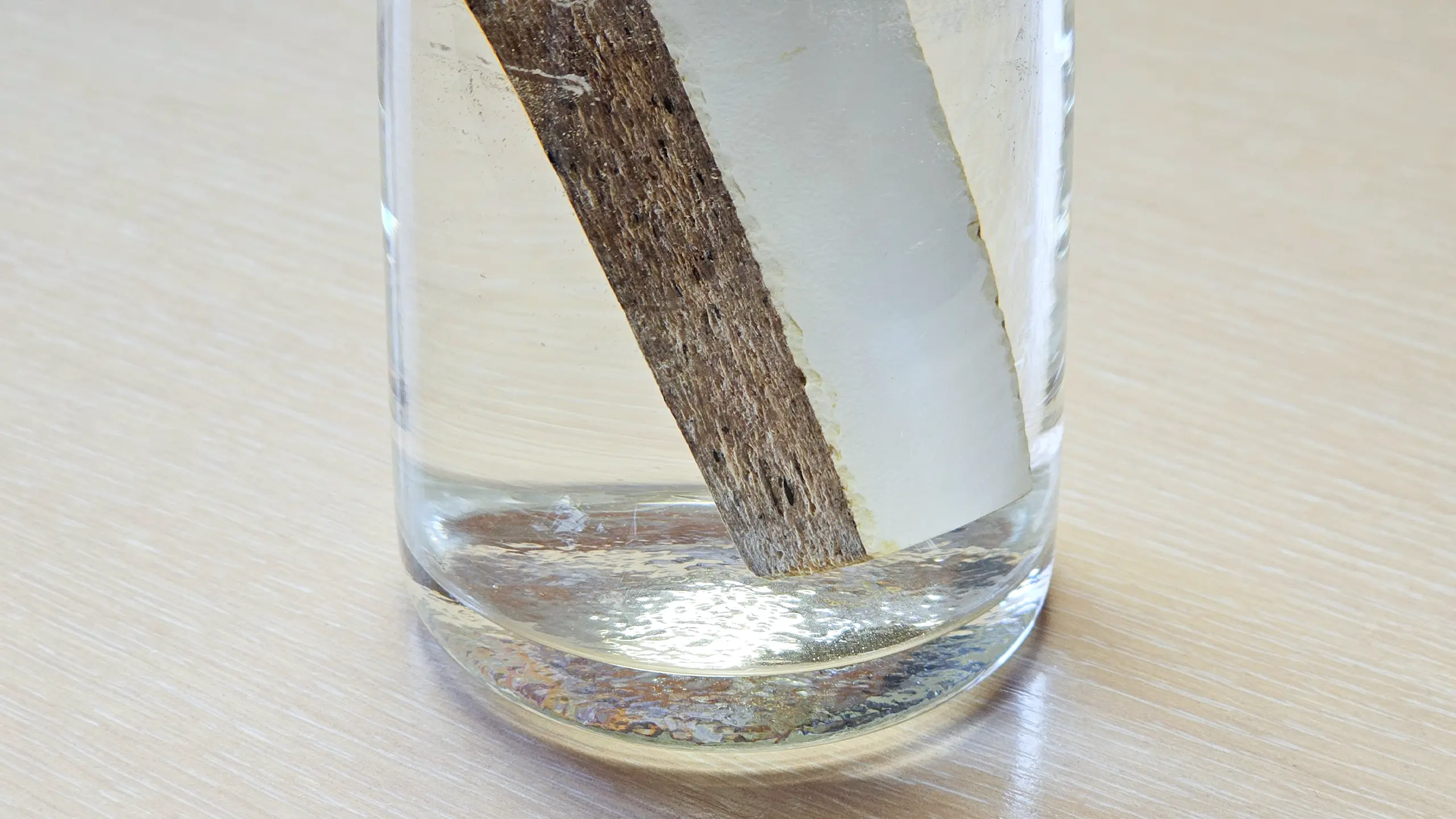 Испытание водой. Для этого оба образца были помещены в кипяток! И буквально на глазах в течение 5-10 секунд с лдсп-шным образцом произошло чудо. Он как пончик в кипящем масле вырос и увеличился в размерах. Werzalit же остался неизменным! Даже через 12-14 часов после теста ЛДСП не вернулся к прежней форме.