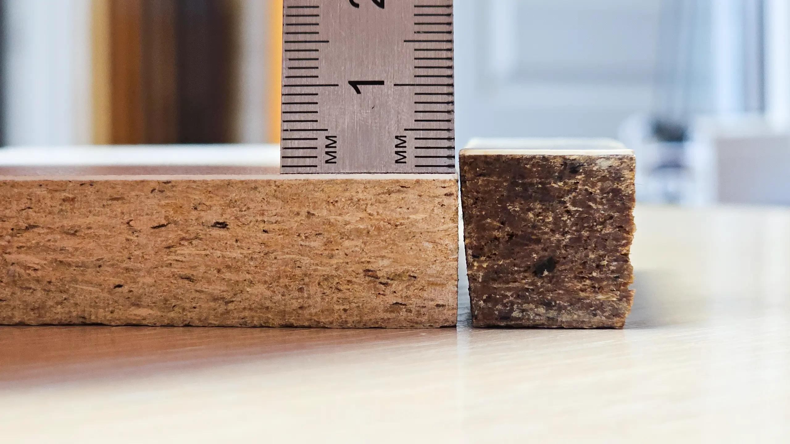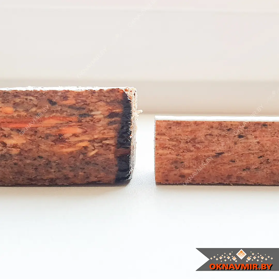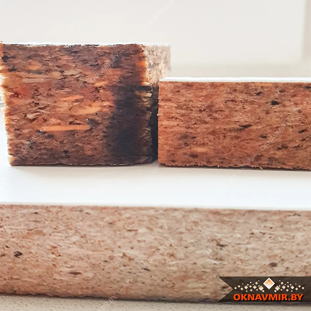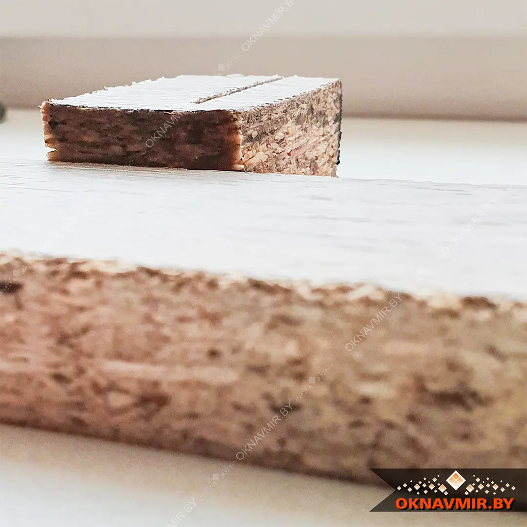 И в этот раз нам было интересно не столько качество покрытия, сколько сама основа подоконной доски. Со слов производителя это вам не просто опилки непонятно каких древесных отходов, спрессованных в плиты.