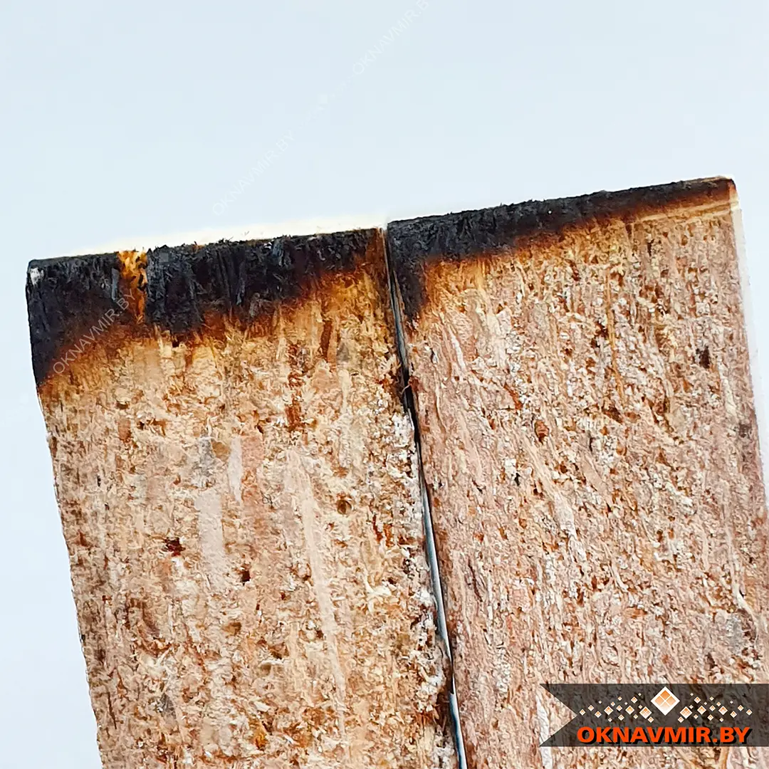 Подожгли края образцов. Верзалит не поддерживает горение, не коптит, пахнет реально жженой древесиной, без каких либо посторонних включений. ЛДСП коптит, запах — отвратительный.